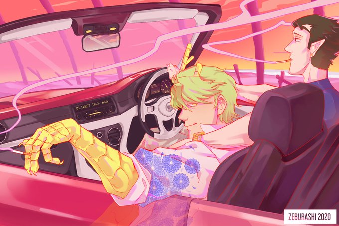 Was having trouble drawing Yumeji because I don't know how should I make his elbow rest comfortably on the side of the car. @WendyLiZard told me maybe he just sits on a baby booster. Then this happens.