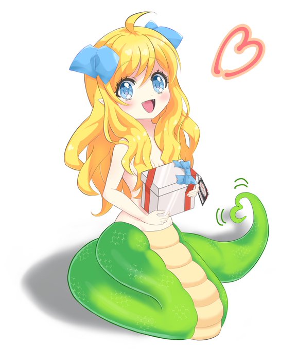 ゆりねお誕生日おめでとう!🎉🥳 邪神ちゃんから素敵な(?)プレゼントを貰って嬉しそうです。👈🐍 #邪神ちゃんドロップキック #花園ゆりね生誕祭