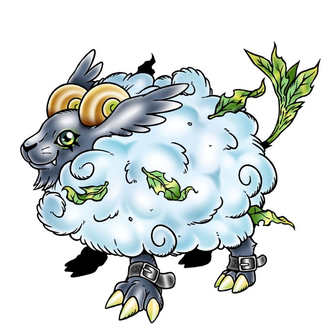This wooly digimon can manipulate and absorb plant data around it, the more data it amasses the fluffier its cotton coat gets.