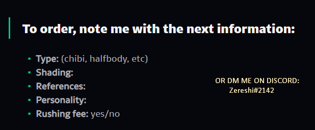 DM me to order! You can DM me on discrod if you like! Zereshi#2142
