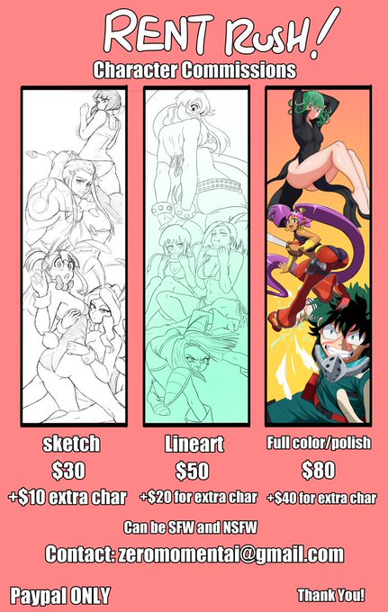 Rent's due and I'm paying all by myself still. I'm taking as many commissions as it takes to cover it! Hopefully this is the last month I have to scramble to make rent, Pls help out if you can! I appreciate any help. contact me at zeromomentai@gmail.com if interested!