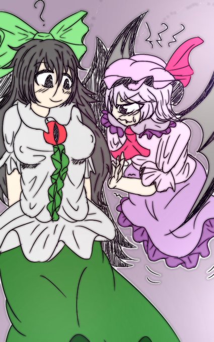 #深夜の真剣お絵描き60分一本勝負 お空+レミリア 本当はレティさんも合わせてサンドイッチしたかった…