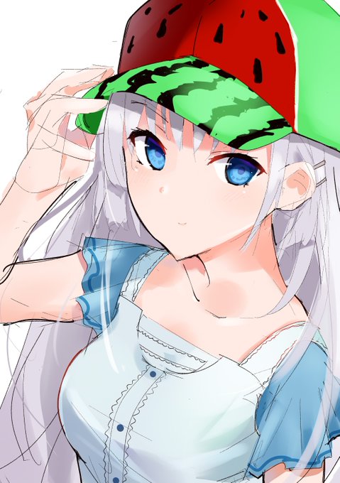 スイカバー帽子被ったしろは🍉