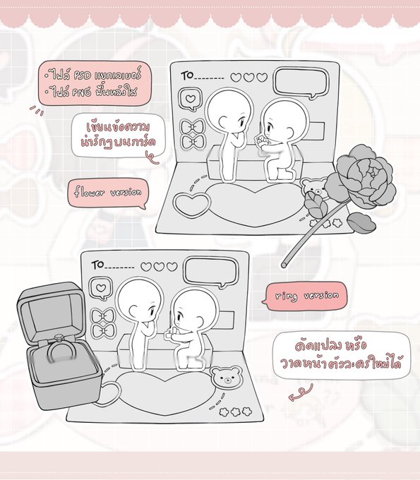 มีทั้งแบบสีและเส้นเปล่า สามารถลงสีเองหรือดัดแปลงได้ตามสะดวก/เขียนข้อความเองได้ค่ะ (png/psd)