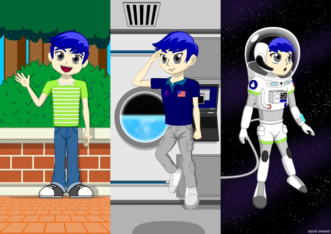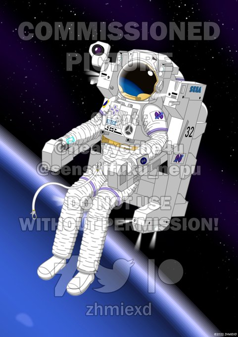 Finally got this done! The pic commissioned by of Neptune from Hyperdimension Neptunia, hovering freely in the space vacuum clad in the ISS EMU!