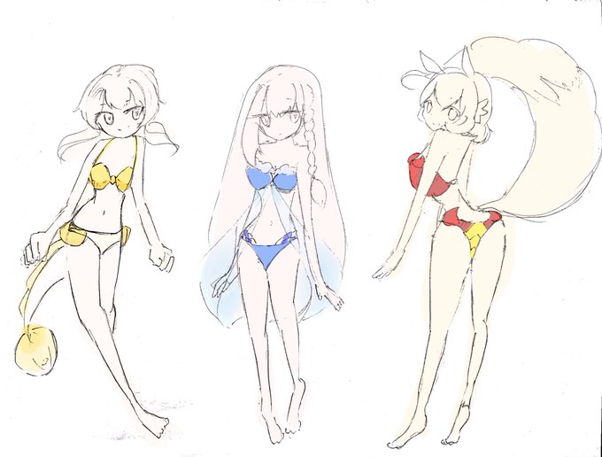 夏だしさー、他のゲームは水着イベやってるしさー、女神モチーフの水着があったらいいなーって思いながら描いてたラフ
