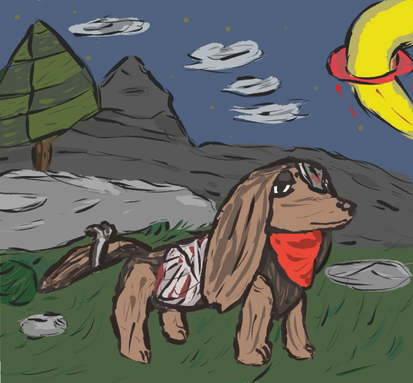Here is an adventurous dachshund wandering through an unfamiliar landscape.