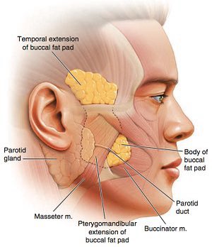 Buccal fat is another name for Bichat’s fat pad, one of the many pockets of fat deep in the face. It starts near the jaw, passes beneath the cheekbone, and reaches up to the temple.
