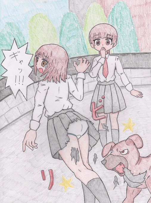 犬に尻噛まれてスカート破られたうちの子