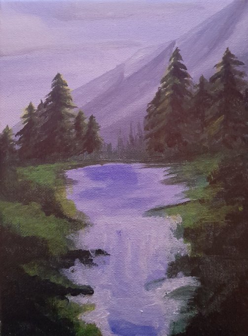 My first acrylic painting. Watched a lot Bob Ross lately and wanted to try it our #bobross #acrylic #painting #landscapepainting