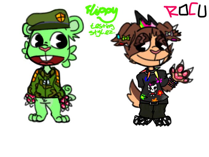 Not posted here for a while but, UHHHHHHHHHH Artstyle change 😻 all these are htf oc commissions. (Apart from flippy). #htfoc #ocart #Commission #htf #cartoonist