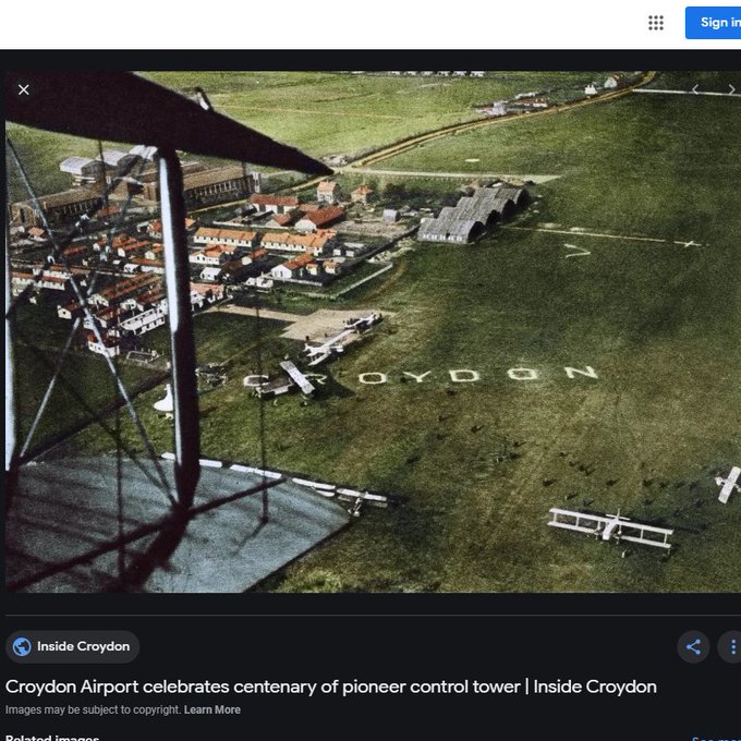 You can see where Croydon airfield was she left from btw, from Crystal Palace sphinxes. Here aerial shot of what Palace looked like too at that time before fires destroyed it 1936 . Also Amy Johnson's 1930 Moth, record breaking flight at Croydon, and the remaining building today