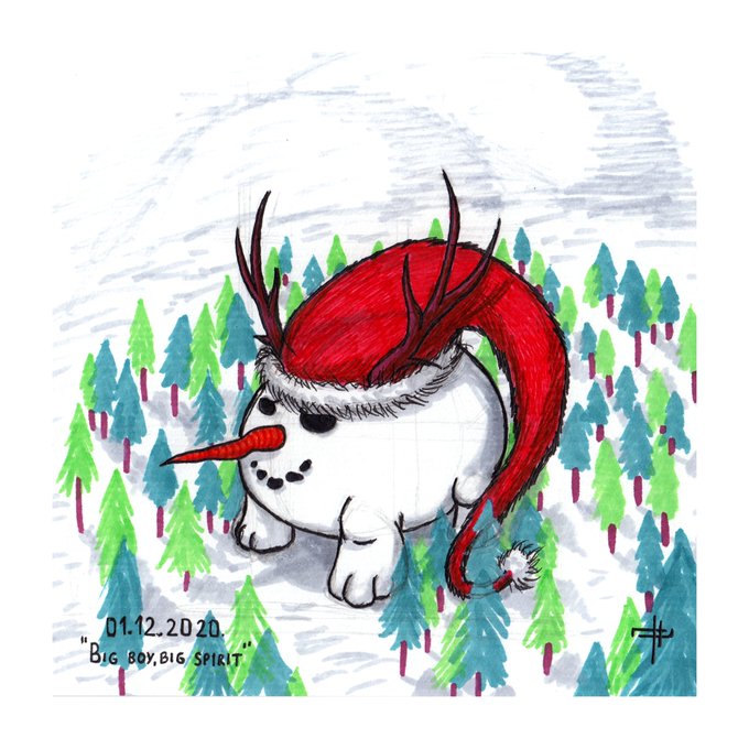 #scenery #minimalscenery #sow #tree #christmashat #snowman #snoemonster #originalcreature #giant #hills #traditionalart #markers #dailyart #dailysketch #sketch