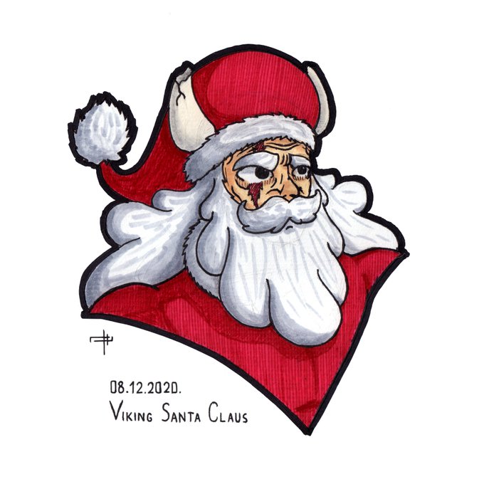 #christmashat #viking #santaclaus #longbeard #old #simplebackground #red #traditionalart #markers #dailyart #dailysketch #sketch