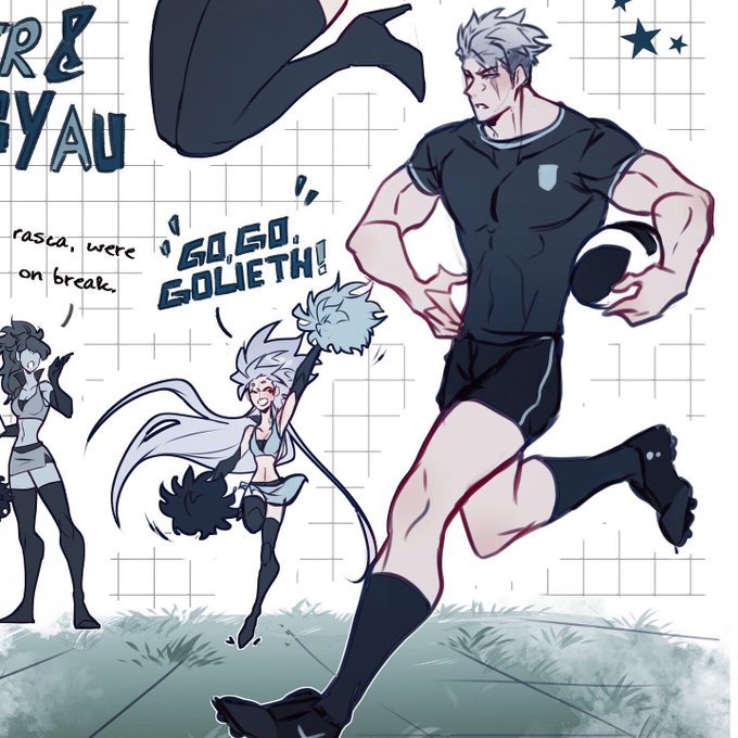 Rasca & Golieth Cheer Rugby AU sketches Pt. 1