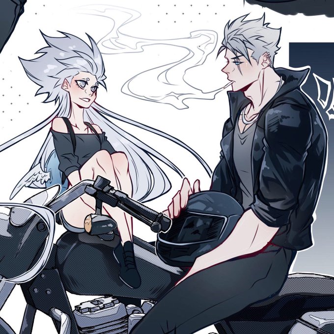 Why work on their actual story, when I can just keep making AU art 🤷🏻♀️ Rasca & Golieth in a Nice Girl/Bad Boy AU idk 😝