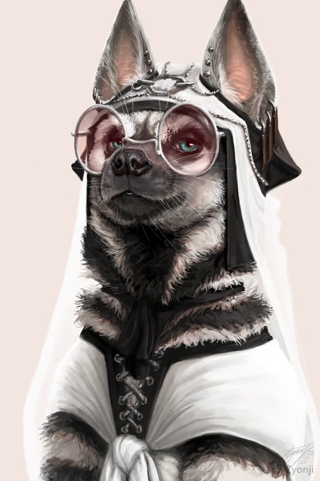 A simple portrait of Soks. I had the pleasure to paint a portrait of another striped hyena, this time for @Scraptors_Art with some dreamy vibes. (:
