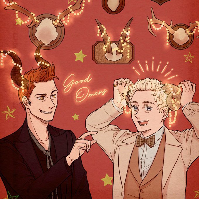 ツノとクロアジちゃん🎄 (2枚目は🕶差分) #GoodOmensFanArt #ineffablehusbands
