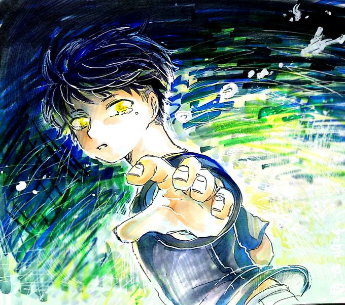 #黒髪男子版深夜の真剣お絵描き60分一本勝負 お題…「金眼」夏の思い出。30分オーバーしました…