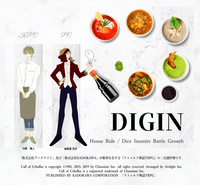 クトゥルフ神話TRPG「DIGIN」 KP:義信 PL:荒太郎 ひのがらで楽しんできました!がらぴにご飯、つくったぞ☺また一緒にシナリオ回ろうね~🥰