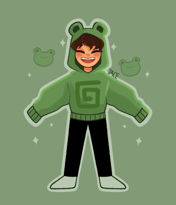 Karl’s frog hoodie is the cutest