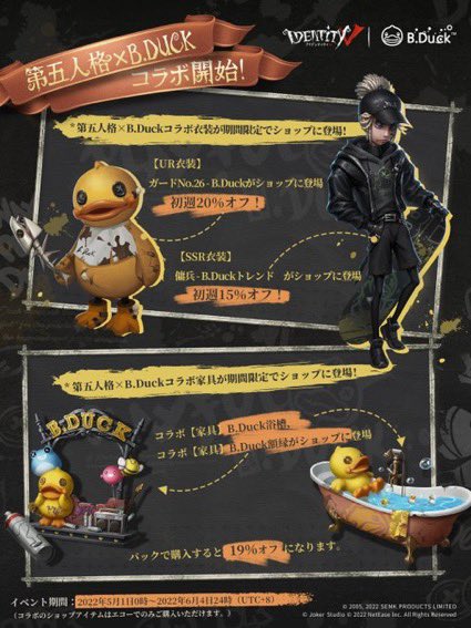#第五人格 × #BDuck のコラボ✨
