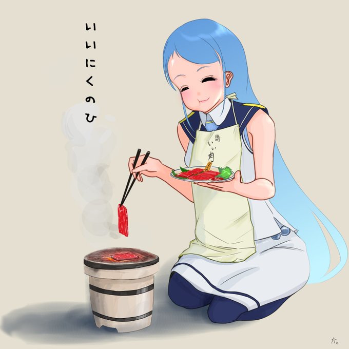 pixivに投稿しました いい肉の日だよ五月雨ちゃん #pixiv https://t.co/DgJWKfT2EA 秋刀魚磯風と同じ風に描くと、「なんでこの人外で正座して肉焼いてるの?」てなります