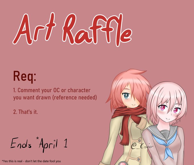 Art raffle. Y'all know the drill - follow the rules and you're in. No retweet/follow required.