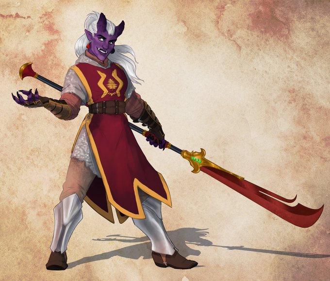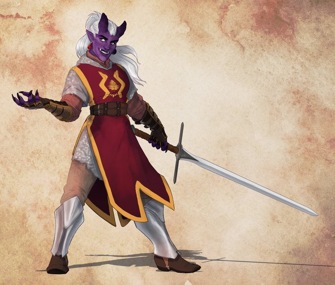 @NiksnNaks My boy, (the blonde) is named Henryk and he's our party's cleric and friendly neighborhood nervous scaredy cat. The other two belong to @Aurex_Aldori , Elena and Akylas, and the three of them are best friends + Elena's Owl familiar Qon