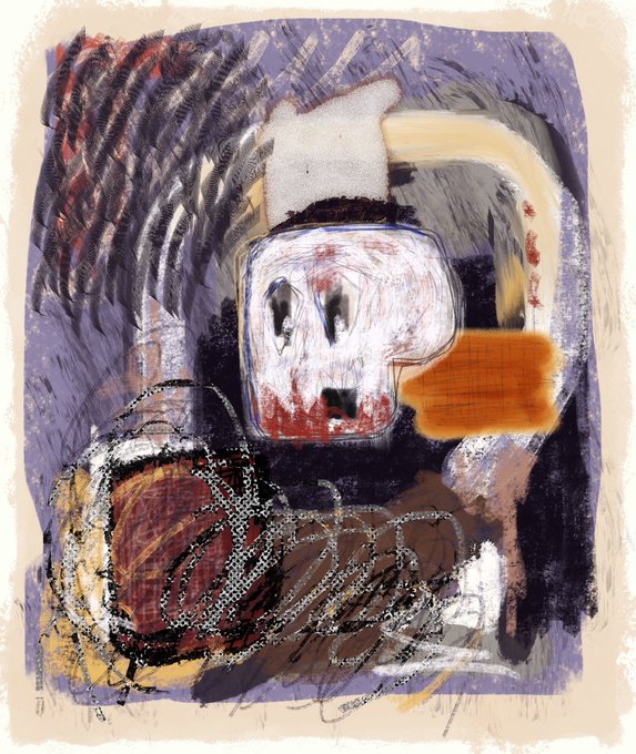 Many know I paint skulls. But skulls are only a field where I can exp with texture and paint, without having to much of a figurative “person/face” emotions to distract away from shape, texture and brushstrokes.