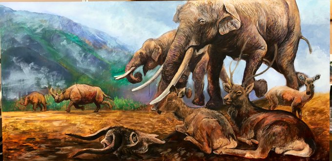 #へたか卒制 昨日までの様子。難しくなってきた!もうちょっと曇り空にします。地面は砂埃が立たない程度の湿ったシルトに見えるようにする。足跡も描く
