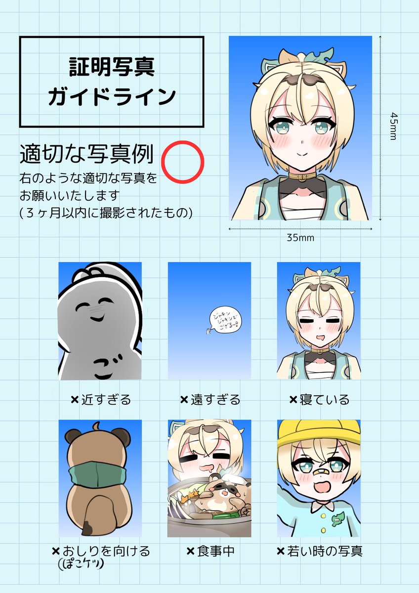 ござるさんと学ぶ証明写真ガイドライン🍃 #いろはにも絵を #証明写真風
