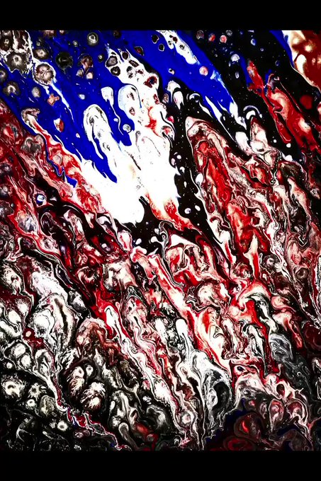 私の流動アート初期の作品で人ひとりではどうにもならないような災害の理不尽さをテーマにおどろおどろしさを色の流れとセル(細胞状の模様)で表現しています。