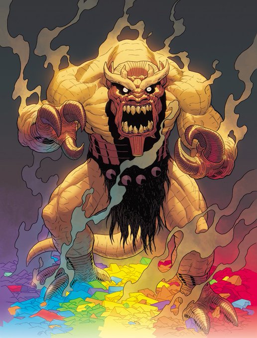 MANGOG! For the book Monsters #01 by Marvel. Loved playing with the lights in this piece. It's not everyday you get to color a monster over a wrecked rainbow!! Art by @Jacen_art