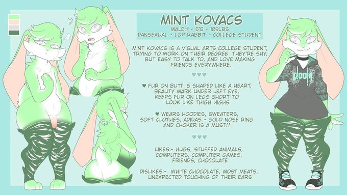 @dicksndemons Here’s my OC Mint! They love wearing all kinds of cute outfits, and would love to model for them if need be~ feel free to dress them up!