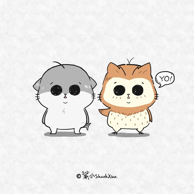 貓頭鷹與鯊小貓 #貓頭鷹 #鯊小貓 #貓 #貓咪 #圖文 #插畫 #アート #イラスト #サメ #サメ猫 #フクロウ猫 #SharkXiao #sharkcat #owlcat #CuteAnimals #cute