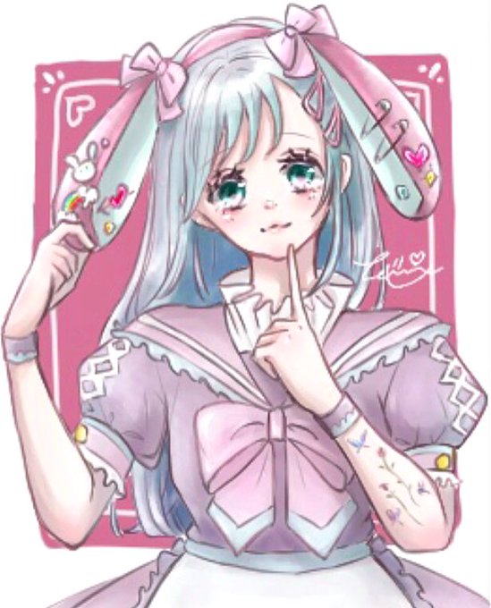 🎀🧸🦋💐 かわいいね〜🥳♥ 紙のサイズ小さくしたら絵がぼやけちゃった、、、ぴえん🥺 #お絵描き好きさんと繋がりたい #イラスト好きさんと繋がりたい