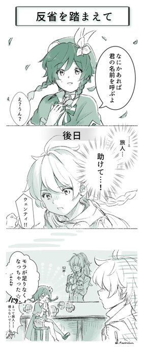 誰かさんの真似をしたいウェンティ #Venti n番煎じネタ即落ち3コマです。