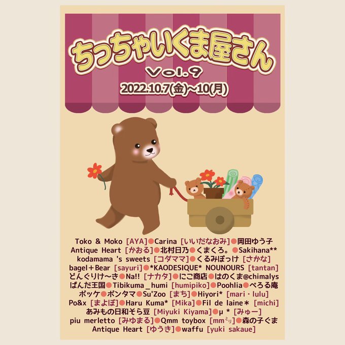 『ちっちゃいくま屋さんvol.9』10/7(金)~10(月)11:00~19:00(※最終日~16:00)