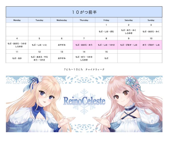 ▹▸ 10がつ前半のよてい