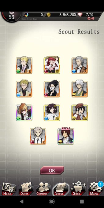 I'M SO HAPPY 😭😭😭 FINALLY AN SSR #ODA 😍 THANKS TO MY BF #SUMMONING POWERS 🙊 #Bungo #straydogs