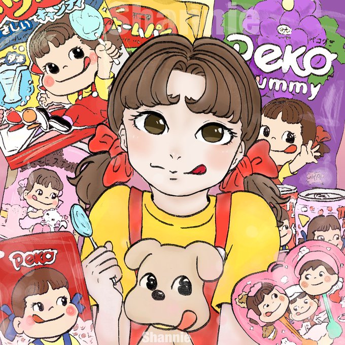#電繪 #繪 #畫 #畫畫 #插畫 #塗鴉 #繪畫 #illustrationart #art #draw #drawing #draw #drawings #illustration #painting #girl #dog #不二家 #peko #candy #cookies #chocolate #fudge #lollipop #ペコちゃん #牛奶妹