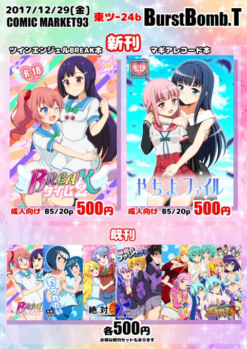 1日目東フ54a【BurstBomb.T】新刊はツインエンジェルブレイク本とマギアレコード本です。