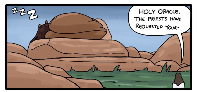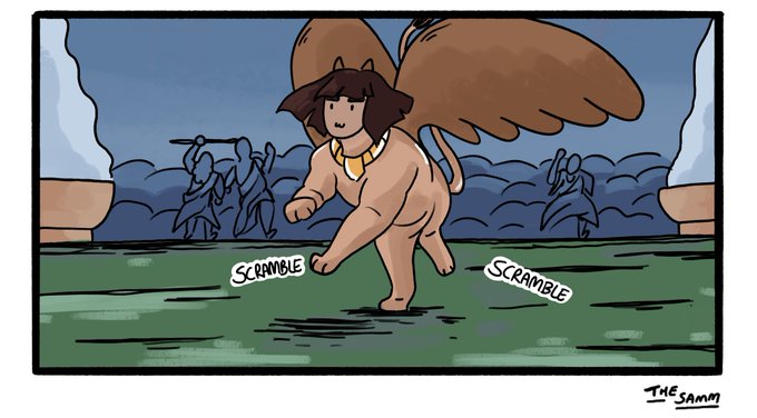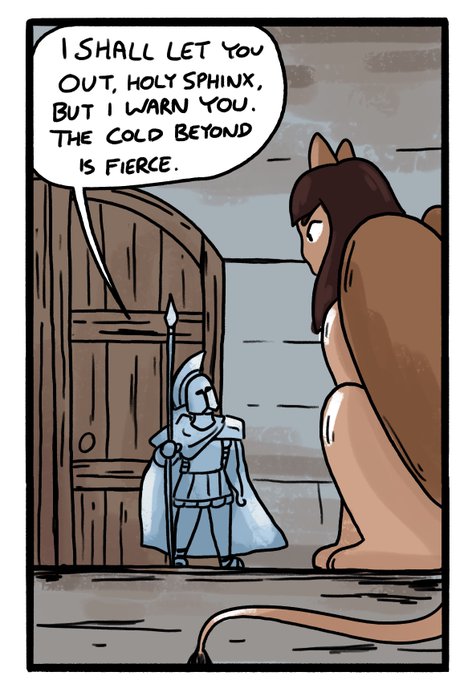 @peowstudio I’m doing a collection of Sphinx comics! She’s the wise oracle of her temple and a big dumb cat!
