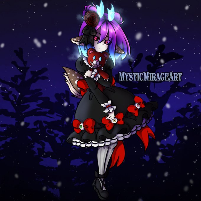 @rosyincubus Hello! My name is Winnie Grimrose! I go by MysticMirageArt on Twitch! I am a Spooky doll artist! I really love the GothicLolita Fashion style 💜