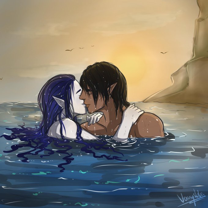 And that's an elf from @LeilanArts ttrpg system. She's a fighter of the goddess of water, so she transforms into a waterspirit and literally becomes one with an allie or enemy to buff / debuff them. The aesthetic is amazing and it feels incredible smooth to play.