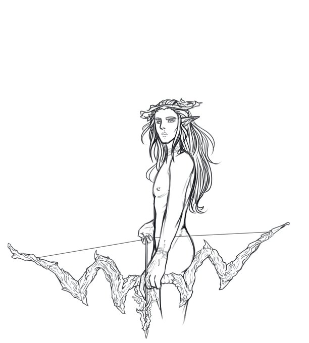 Got inspired today and wanted to draw one of @LeilanArt s DnD Chars. He's amazing. I love him. He's a Hexblade Warlock with a bow. And a Drow. I just love him. Nothing more to be said XD ❤️