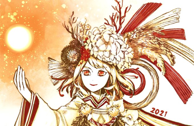 謹賀新年2021 #オリジナル #ファンタジー #創作 #イラスト #和風 #水引 https://t.co/6h1HO4qKGU