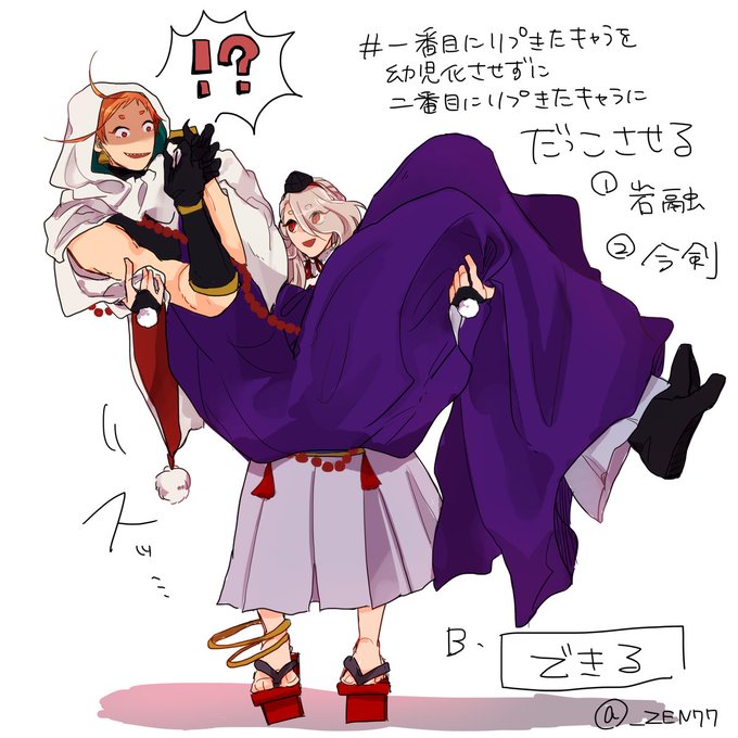 リプのタイミングが神がかっていた有り難うございました👏 せっかくなので両パターン #一番目にリプきたキャラを幼児化させずに二番目にリプきたキャラにだっこさせる