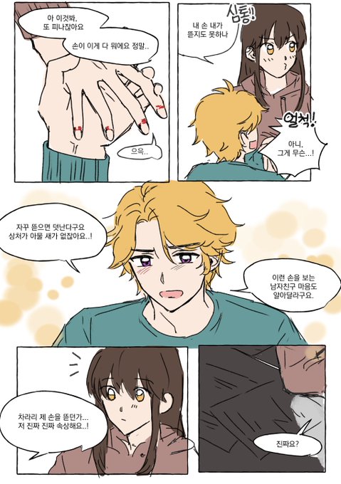 리퀘로 받은 손톱 뜯는 여주에게 자기 손 물려주는 유성.. 이었으나 유성 손을 물어뜯는 여주가 되어버린.. (ㅋㅋ ㅠㅠㅠㅠ)